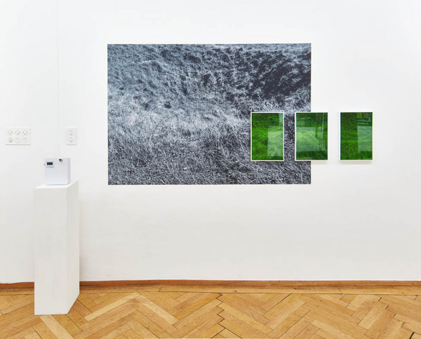 Den eigentlichen Auftakt zur Ausstellung im Museum macht die Installation Wiese (Nr. 1) des Zürcher Künstlerduos huber.huber. Über die großformatige Fotografie einer Wiese in Schwarz-Weiß sind grün eingefärbte Drucke von Aufnahmen eines Wiesenstücks hinter grünem Glas montiert, daneben ein hinzugestellter Diffusor, der gleichmäßig einen Duft im Raum verteilt. Dabei handelt es sich um eine synthetische Komposition, welche das olfaktorische Ereignis einer frisch gemähten Wiese simuliert. Es ist ein grasiger, leicht metallischer Geruch, der sofort Assoziationen an Barfusslaufen im Sommer oder zufrieden weidende Kühe weckt. Mithilfe des Duftes werden Erinnerungen wachgerufen, die unsere Wahrnehmung mit sinnlich verankerten Assoziationen unterlegen.